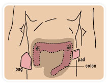 A colostomy indicates that the opening is from the colon. When the colostomy is in the left colon, only a pad may be needed to cover the opening. When the opening is in the right side of the colon, some type of appliance or bag is required. There are various types of colostomies. The physician and surgeon recommend the appropriate one for each patient.